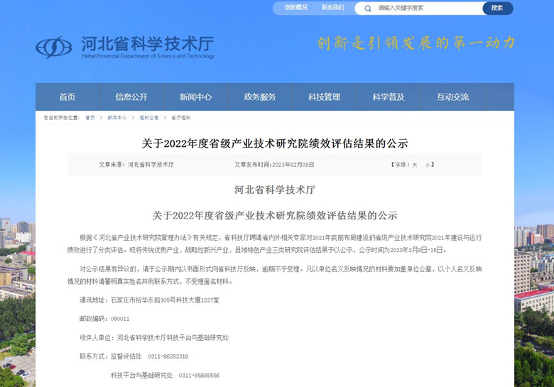 202329日,河北省科技廳發(fā)布了關(guān)于2022年度省級產(chǎn)業(yè)技術(shù)研究院績效評估結(jié)果的公示。經(jīng)評估,我公司建設(shè)運行的“河北省綠色建筑產(chǎn)業(yè)技術(shù)研究院”榮獲戰(zhàn)略性新興產(chǎn)業(yè)類研究院優(yōu)秀等次。