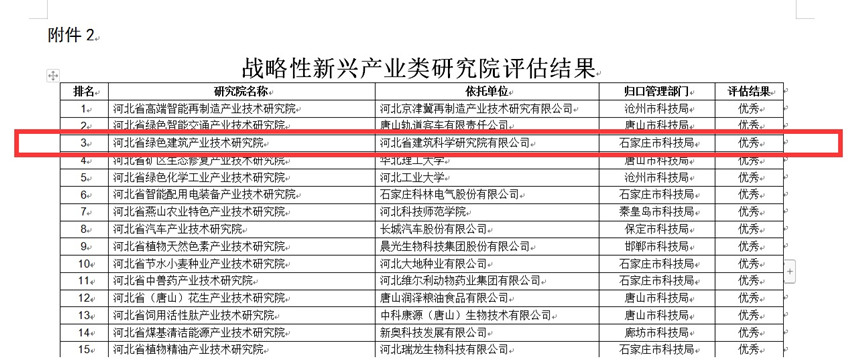 我公司建設(shè)運行的“河北省綠色建筑產(chǎn)業(yè)技術(shù)研究院”榮獲省級產(chǎn)業(yè)技術(shù)研究院績效評估優(yōu)秀等次